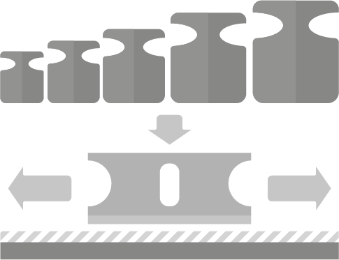 Denne lige klinge test bruges, når den cirkulære klinge test ikke kan anvendes. Den lige klinge test måler den påførte lodrette kraft og afstanden, der kræves for at skære igennem handsken med den standardiserede klinge. Efter hver skæring på prøven bruges en ny klinge, og kraften øger ydeevneniveauet, som vurderes fra A til F, med F som det højeste niveau af skæremodstand.