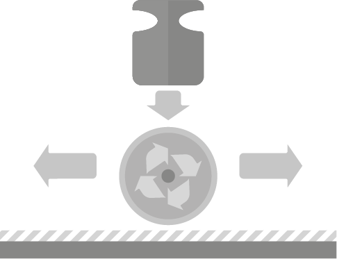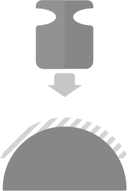 Et sirkulært blad roterer på hanskematerialet. En cirkulær klinge roterer på handskematerialet, mens den bevæger sig frem og tilbage ved en konstant hastighed og tryk, indtil klingen skærer igennem. Resultatet sammenlignes med reference materialet, og der beregnes et indeks.
