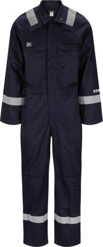 Let flammehæmmende kedeldragt med stående krave, tovejs lynlås under frontklap, fold i ryggen, elastik i taljen, blød velcro til navneskilt på venstre bryst, brystlommer med lynlås og klap, inderlomme, ærmelomme med klap, sidelommer med gennemgreb, baglommer med klap, værktøjslomme, knælommer og reflekser omkring ærmer, ben og skuldre.