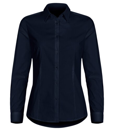 Langærmet skjorte med stretch, figursyet pasform, knapjustering på ærmet, bærestykke bagpå
