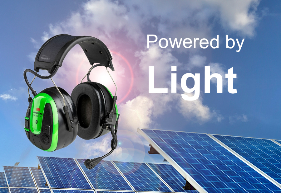 Oplev det innovative høreværn fra 3M™, der oplades af lys! Hovedbøjlen har en integreret Powerfoyle™ solcellefilm fra Exeger, som oplader batteriet både fra indendørs- og udendørslys. Dette betyder mindre behov for batteriskift, hvilket sparer både miljøet og pengepungen.