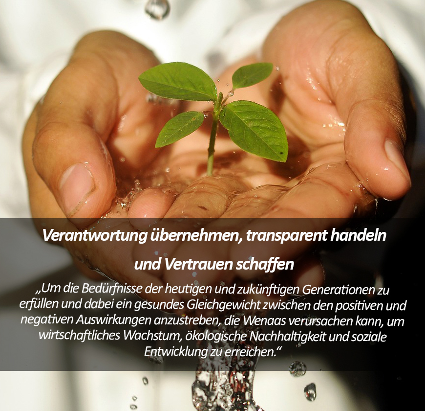 Für Wenaas sind eine ethische und verantwortungsvolle Unternehmensführung essenziell – geleitet von der Sorge für Menschen und den Planeten in allen Bereichen unserer Tätigkeit.