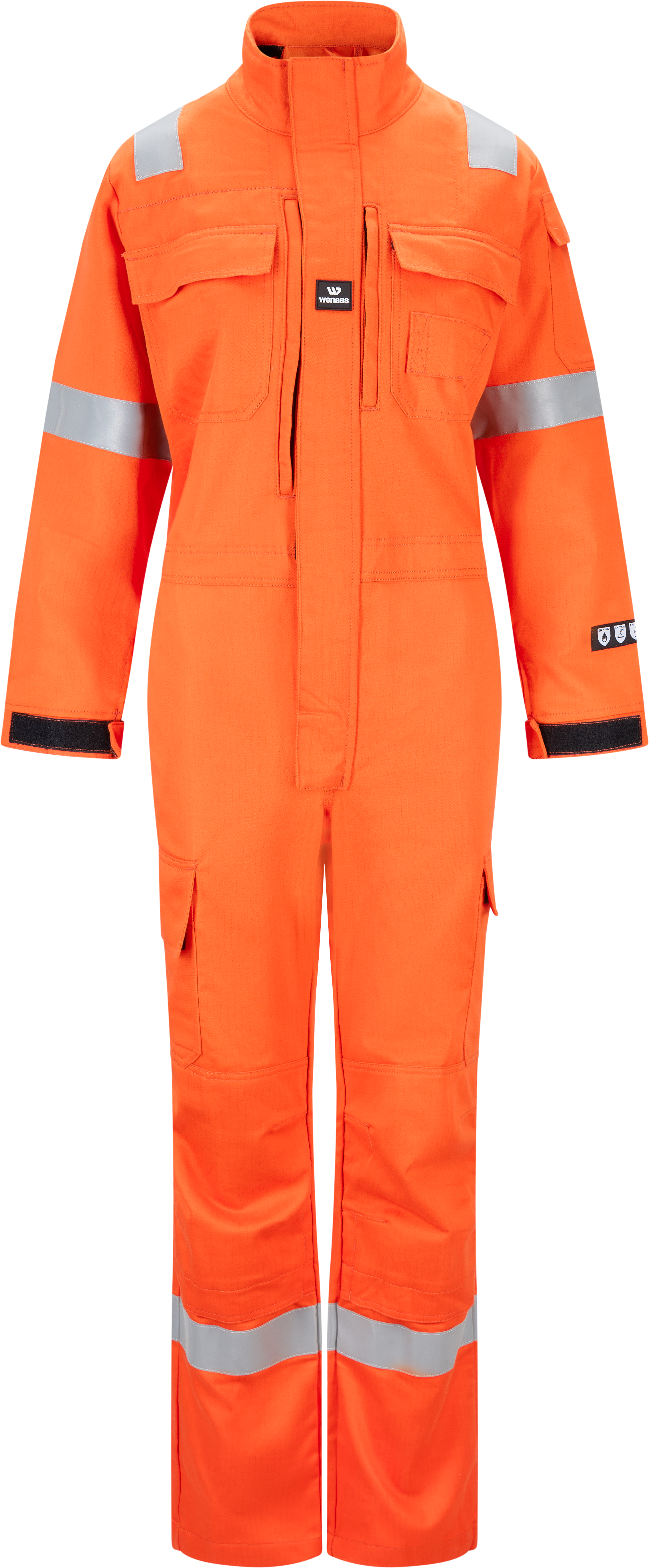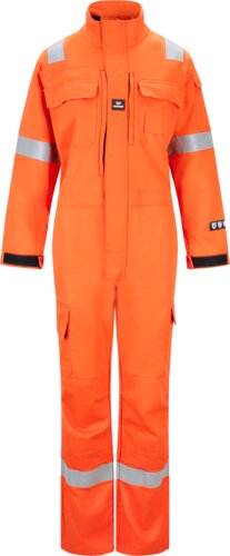 Flammhemmender Damenoverall mit integriertem ToolGuard™ Fallschutzsystem für die sichere Handhabung von Werkzeugen. Bequeme Passform mit intelligenten Funktionen wie iPad-Tasche, Gasdetektorschlaufe, verstellbaren Details und reflektierenden Elementen für bessere Sichtbarkeit.