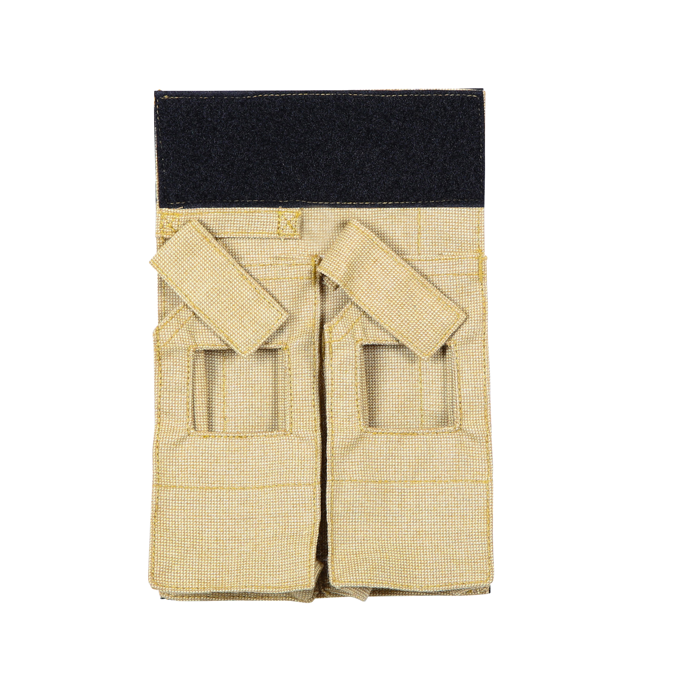 Abnehmbare Brusttaschen für die PBI-Jacke. Bei diesem Modell handelt es sich um eine doppelte Funkgerätetasche für die linke Brust mit Erweiterung an den Seiten und am Boden, die Innenseite des Bodens ist mit Verstärkungsmaterial versehen. In der Mitte jeder Tasche ein Fenster, Schlaufe mit Klettverschluss, zum Schließen der Tasche.