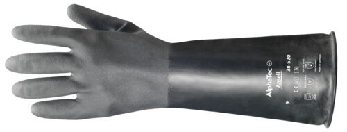 Bequeme Chemikalienschutzhandschuhe aus Butylpolymer. Schützt gut gegen die aggressivsten Chemikalien, wie Aldehyde, Ketone und Ester sowie Mineralsäuren, ohne den Komfort zu beeinträchtigen. Lange Bündchen, ergonomisches Design und guter Grip bei Nässe und Trockenheit. Kein Risiko für Latexallergien. Karton: 36.