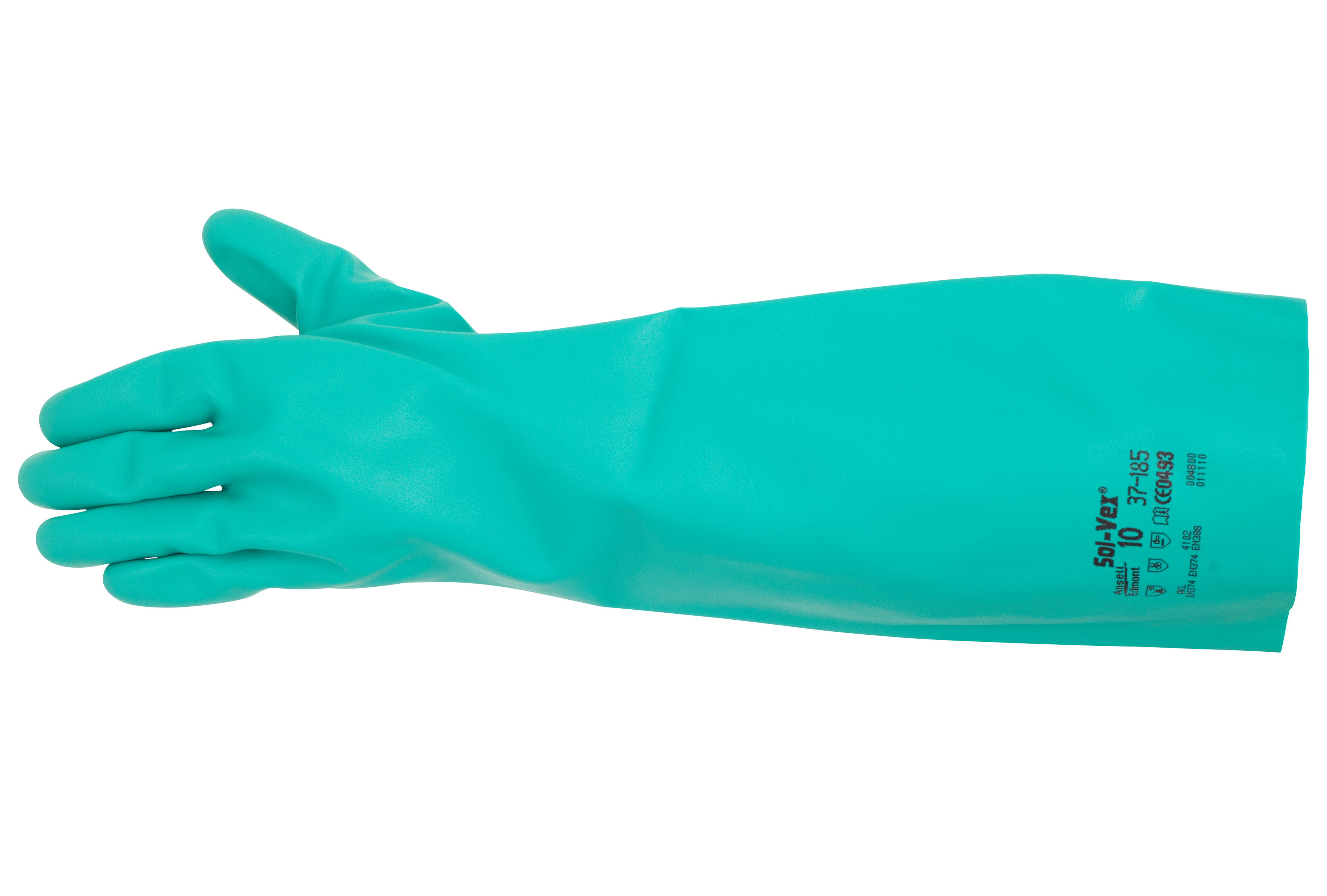 Sehr strapazierfähige Chemikalienschutzhandschuhe aus Nitril. Lange, über den Ellenbogen reichende Handschuhe mit gutem Tragekomfort und Schutz vor Chemikalien. Die ideale Wahl für Arbeiten in Produktionsbereichen mit Schadstoffbelastung. Die gemusterte, raue Oberfläche bietet gute Nass- und Trockenhaftung. Karton: 12.