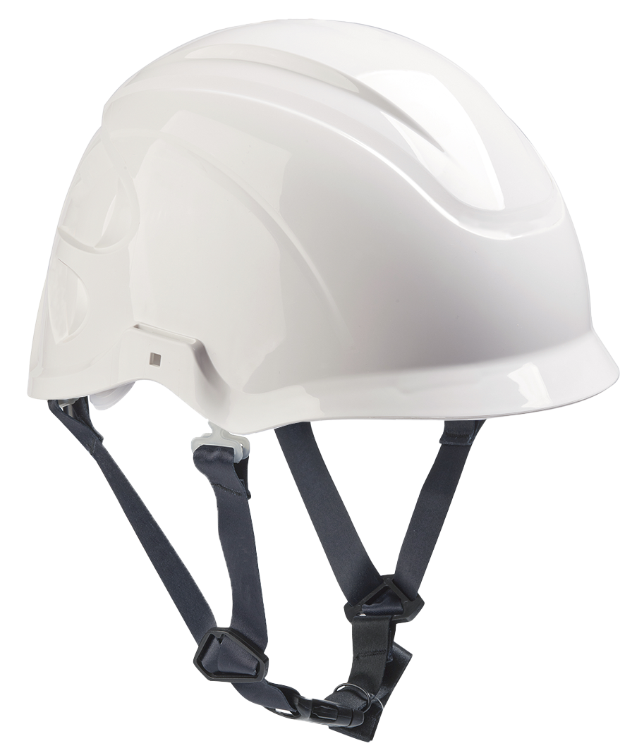 Centurion Nexus SecurePlus, unbelüfteter 1000-Volt-Helm mit 6-Punkt-Aufhängung. Kurze Krempe. Komfortband aus Polyester und 4-Punkt-Kinnriemen. 30-mm-Schlitz zur Befestigung von Zubehör. Größe 52–64 cm. Gewicht 415 g. Karton: 5 Stück.