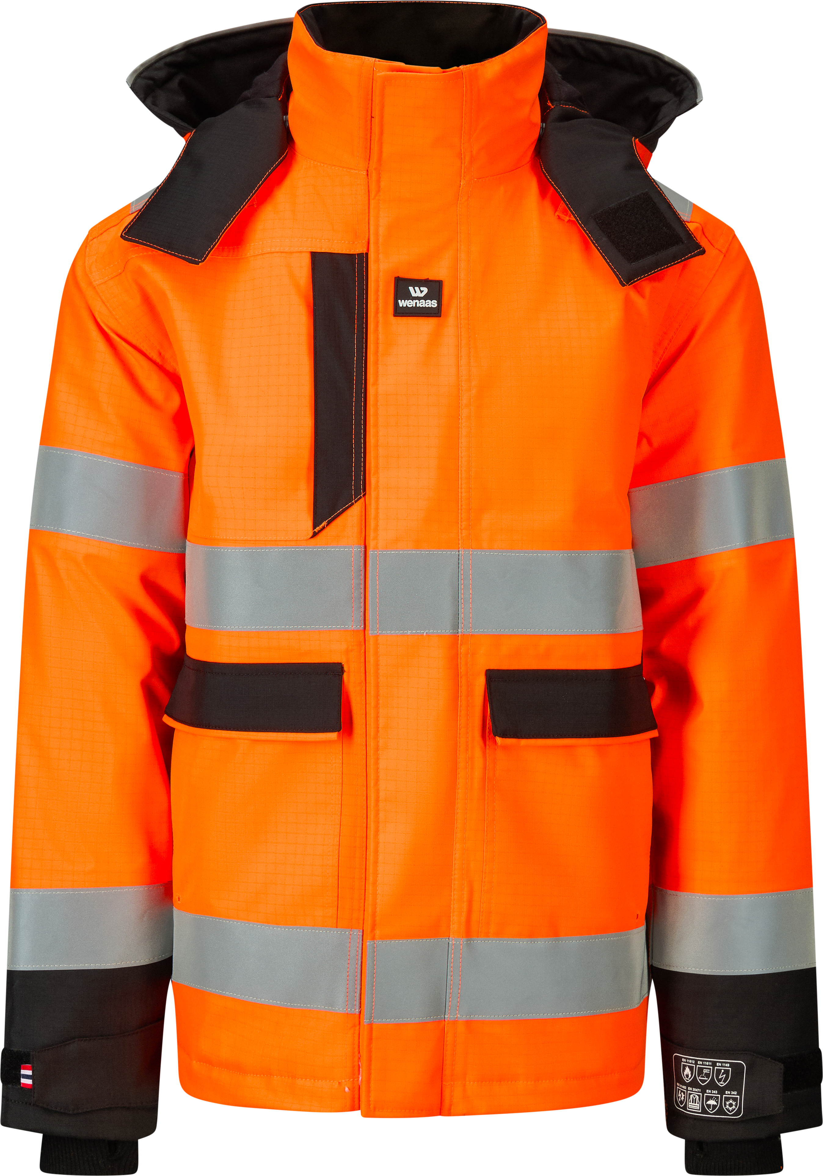 EN ISO 13688:2013+A1:2021, EN 343:2019, class 4.1 EN 342:2017, class 3. Icler 0,332 m²K/W(B) in combination with 29231-44515, 29232-44515, or 29242-44515, EN 1149-5:2018, IEC 61482-2:2018, APC 1 (4 kA), ATPV 39 cal/cm², ELIM 35 cal/cm² EN ISO 11611:2015, Class 1 A1+A2, EN ISO 11612:2015, A1+A2 B1 C1 E1 F1, EN ISO 20471:2013, class 3, RIS-3279-TOM:2019 (only for color 2810)