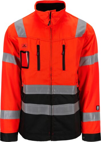 Signaljacke mit Stehkragen, gefüttert mit Fleece und Reißverschluss an der Vorderseite. Mehrere praktische Taschen und Verstellmöglichkeiten. Reflektierende Details an den Schultern, Ärmeln und am Rumpf.