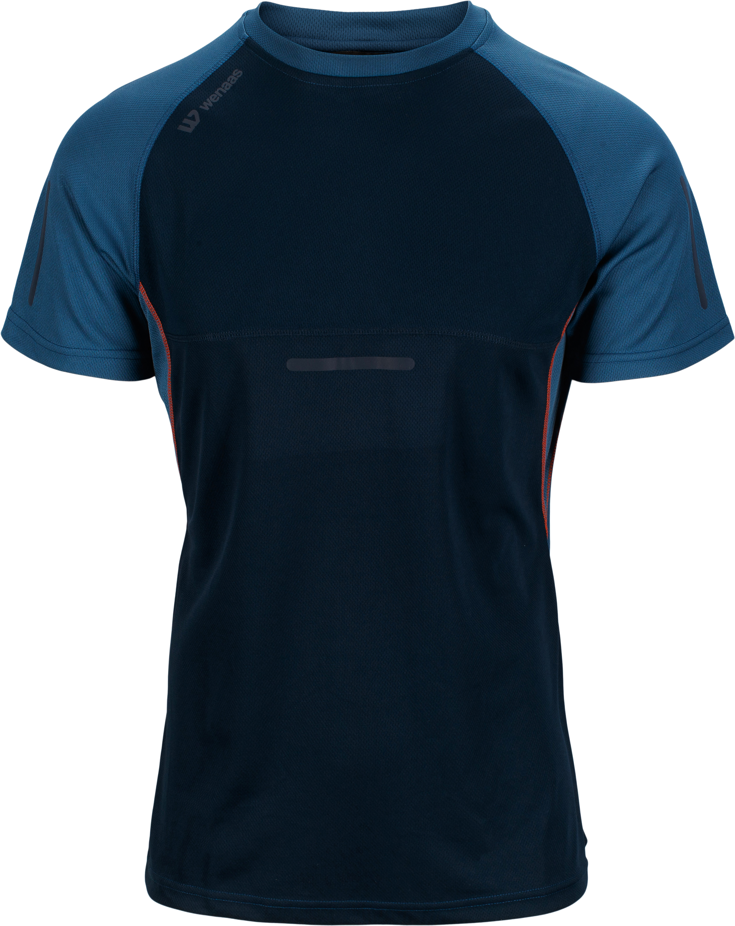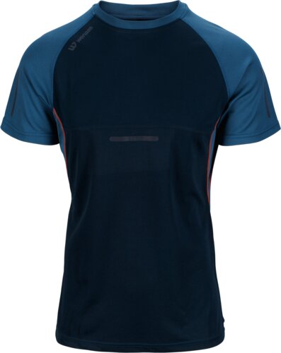 Leichtes und feuchtigkeitsabsorbierendes T-Shirt aus Mesh-Gewebe, Rundhalsausschnitt, kurze Ärmel, extra belüftende Mesh-Einsätze im Nacken und unter den Ärmeln. Kurze, dünne Reflektorstreifen an Rumpf und Ärmeln.