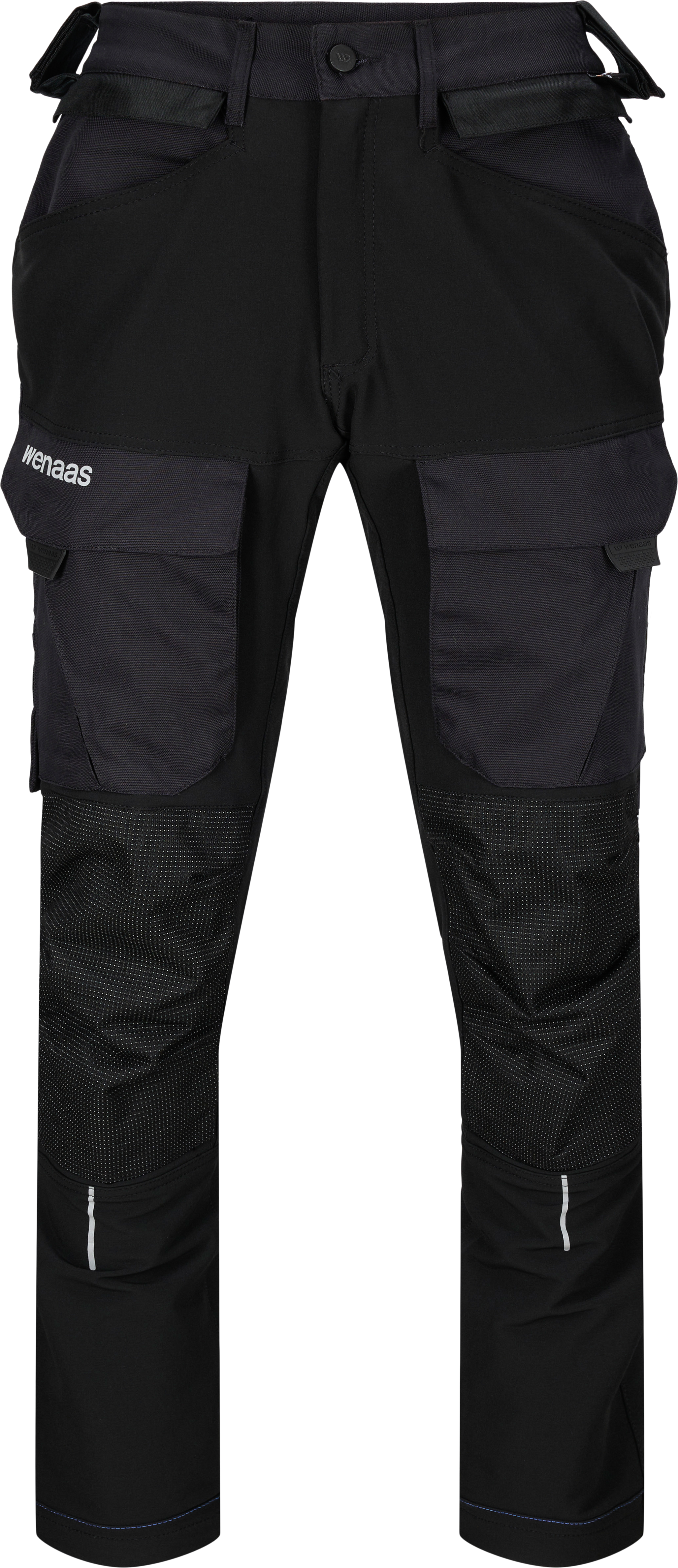 Strapazierfähige Arbeitshose mit Stretch, Gürtelschlaufen am Bund, Knopfverschluss und Reißverschluss. Der hinten erhöhte Bund schützt den unteren Rücken. Mit Rückenpasse und Zwickel im Schritt für zusätzlichen Komfort. Die Hose ist mit zahlreichen praktischen Taschen und Werkzeuglösungen ausgestattet, darunter abnehmbare Hängetaschen auf der Vorderseite. Seitliche Reißverschlüsse an den Beinen sorgen für Belüftung und sind in Weite und Beinlänge verstellbar. Verstärkte Kniepolstertaschen mit zwei Höhenoptionen sorgen dafür, dass die Kniepolster unabhängig von der Beinlänge richtig sitzen. Wählen Sie einfach für sich die richtige Knieschonerposition. Reflektorstreifen sorgen für zusätzliche Sichtbarkeit im Dunkeln. Ideal für alle, die eine Arbeitshose mit vielen Taschen und Befestigungsmöglichkeiten für Werkzeuge benötigen.Weniger zeigen