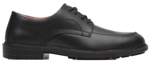 Uniformschuh in klassischem Design, aus Leder, mit Schnürung. Rutschfeste, stoßdämpfende Sohle aus PU-Leder. Schwarze und neutrale Nähte. Innenfutter aus atmungsaktivem Textil und Leder. Gepolsterter Kragen. Herausnehmbare gepolsterte und antistatische Innensohle.