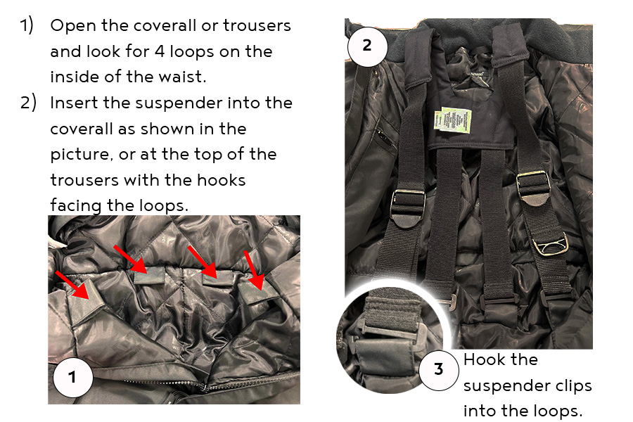 Wenaas offers suspenders that you can use inside both winter and summer coveralls. These attach to loops found in your Wenaas coverall. Once the suspenders are fastened inside the coverall and adjusted to the correct length according to your body and the size of the coverall you are using, you will noticeably feel that the coverall fits better. The suspenders help to relieve and distribute the weight of the coverall in a much more comfortable way. As a result, the coverall feels significantly more comfortable to wear, providing enhanced comfort.