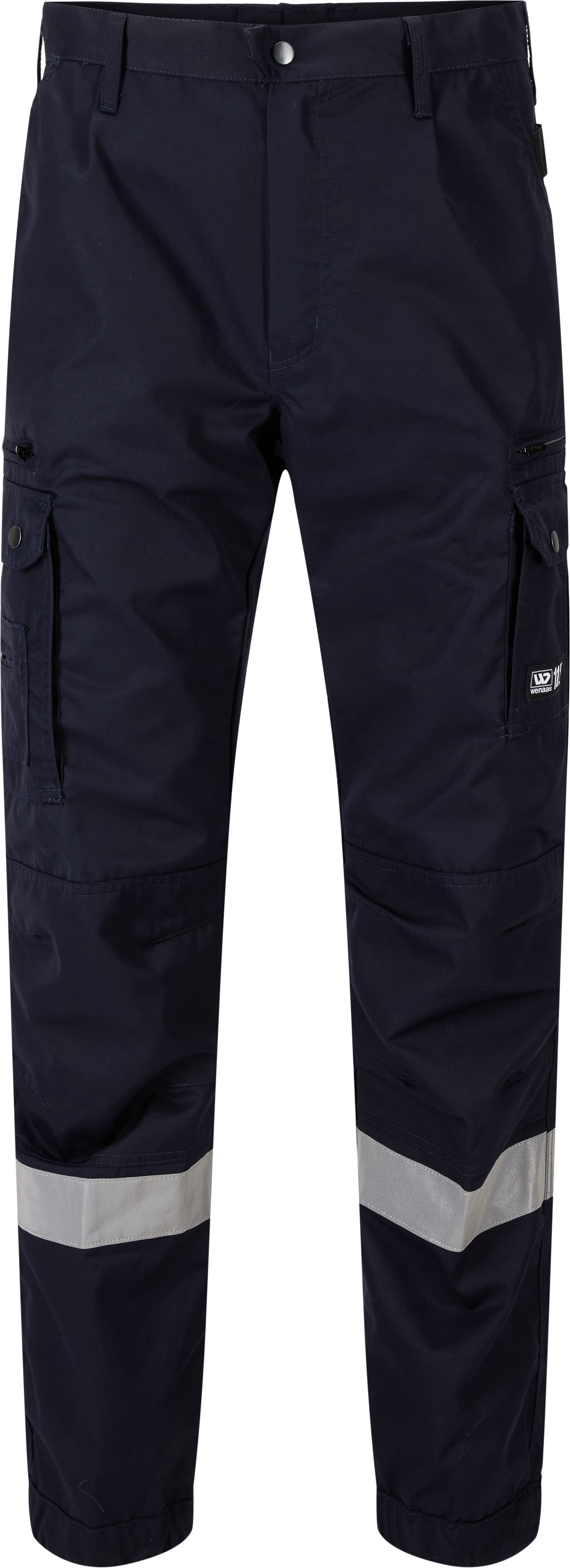 Lightweight, comfortable, durable trousers with an anti-crease finish. Many practical pockets, form-stitched knees with reinforcement, and adjustable hem width. These trousers withstand numerous wash and dry cycles. Suitable for service professions where high visibility in darkness is required.