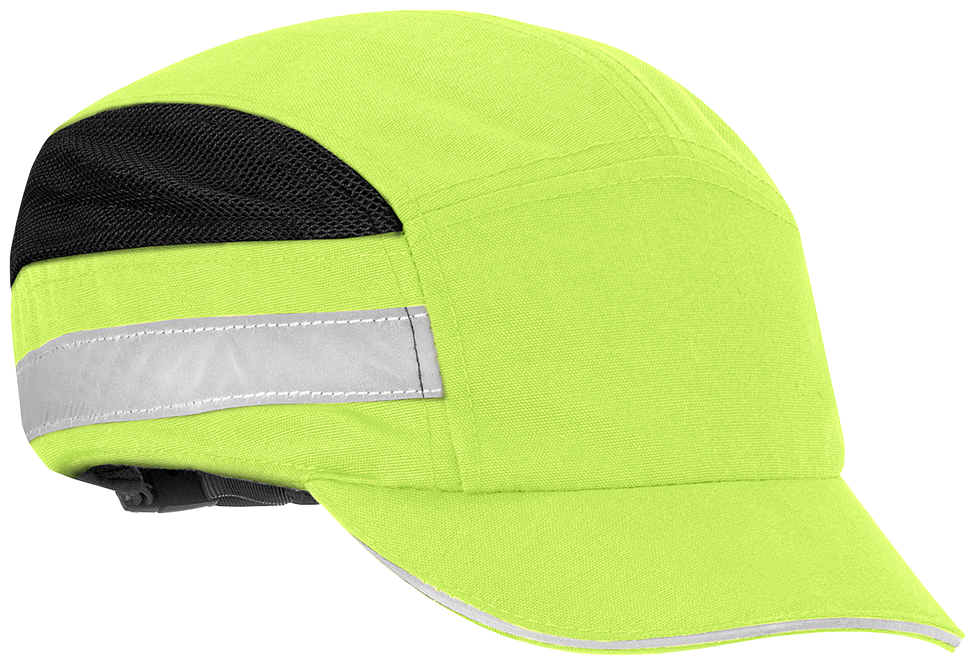 Bump Caps made of cotton and polyester integrated with mesh. Reflex on both sides for high visibility. Perforated shell in ABS plastic with inserted foam created for optimal comfort, protection, flexibility and ventilation. 55mm shortened cap peak. 52-65cm adjustable sizes.
