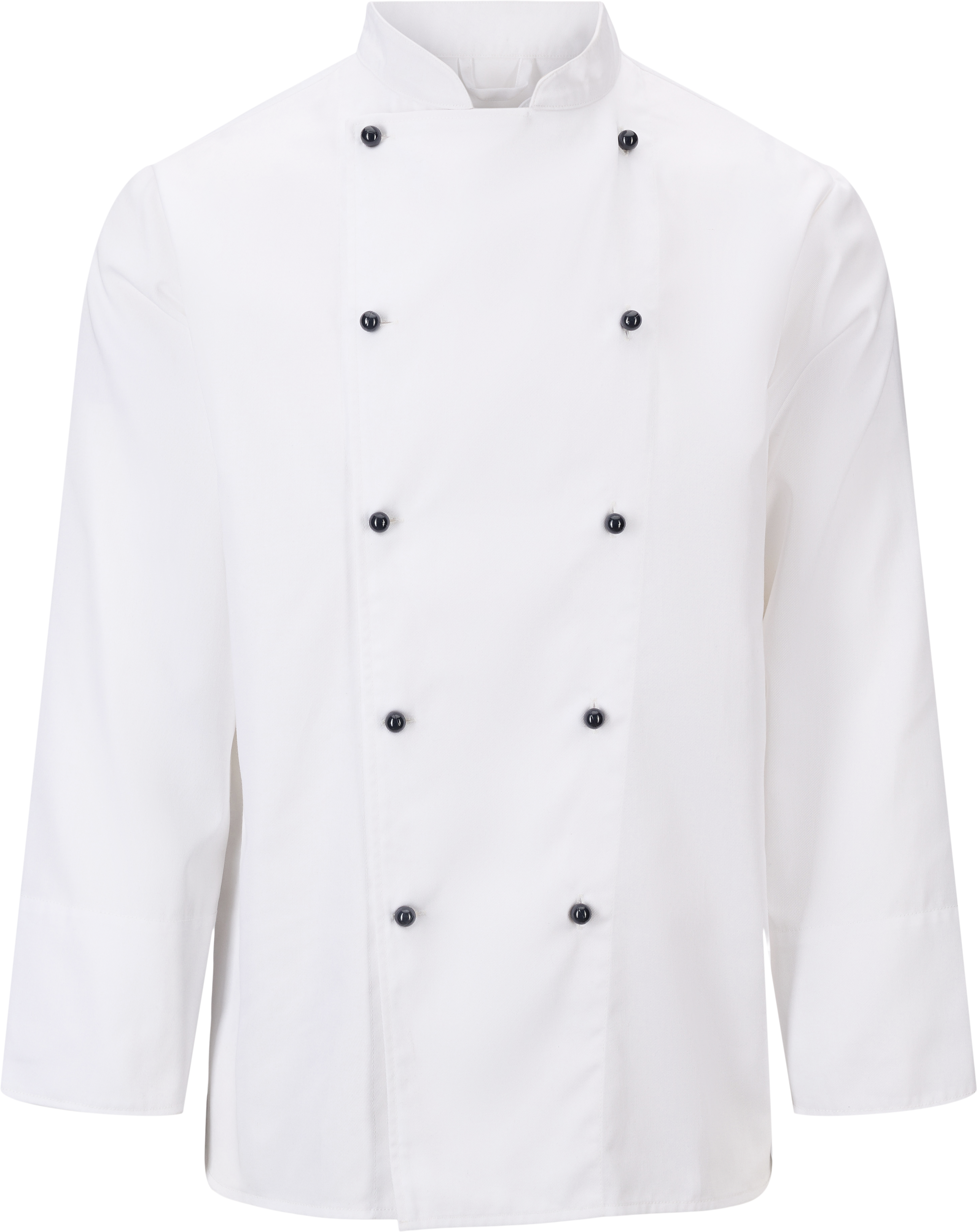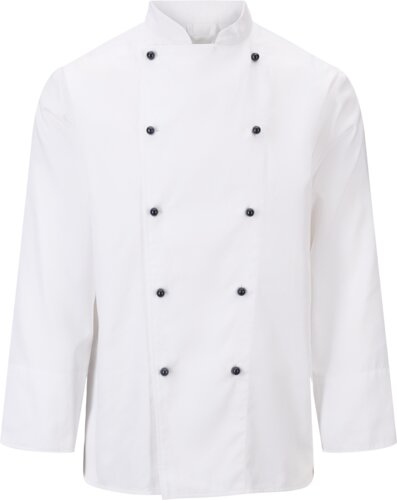 Durable and classic chef jacket with unisex fit. Double-breasted design with removable plastic buttons that can be fastened from either side. A professional look ideal for busy kitchen environments.