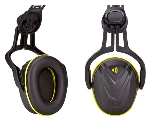 The MSA V-Gard passive hearing protector with helmet mount (Adapter 14) features medium attenuation with an SNR of 32 dB, designed for comfort and optimal protection in demanding work environments. Its modern, low-profile design ensures all-day comfort, and the adjustable arms can be set in a “parked” position on the helmet when not in use. The hearing protector effectively reduces harmful noise and is ideal for industrial and manufacturing settings, power generation, construction, and the oil and gas industry. Compatible with MSA V-Gard helmets. Carton: 18 pcs.