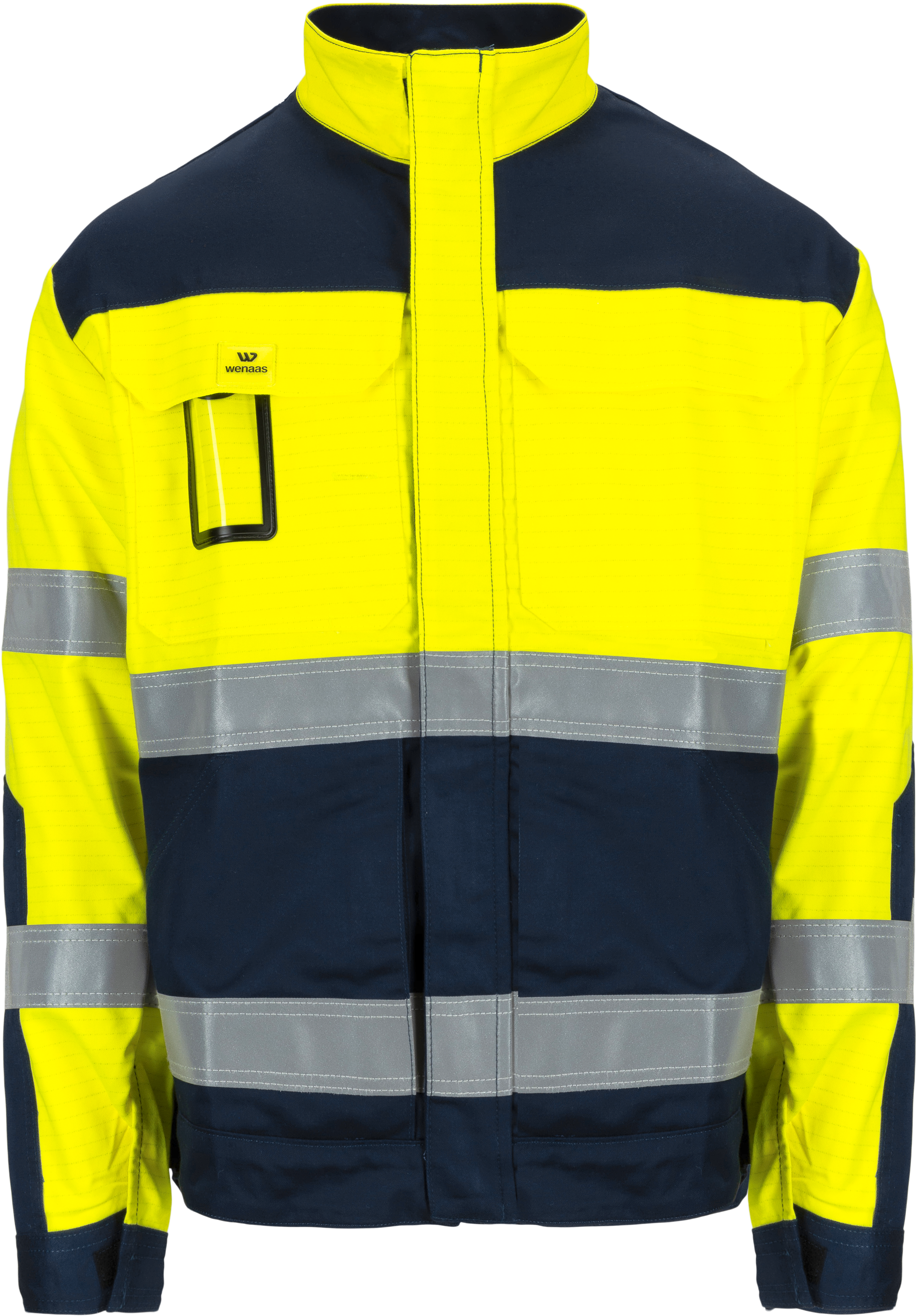 Comfortable and durable visibility jacket with hidden zipper in the front. Fold in the back for improved mobility, extended back piece to keep back warm and several practical pockets. Adjustable waist and hem. The jacket is suitable to wear when protection is needed against arcs and flames, in addition to being highly visible.