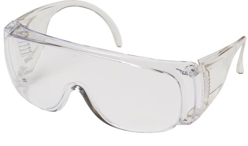 Spectacle for wearers for of prescription spectacles, and site visitors. Ventilated temples to reduce fogging. Good side protection. Weight 46 gr. Carton: 25 boxes of 12 pcs.