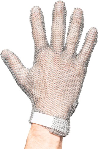 5-finger glove Niroflex Easyfit without cuff, without coating, reversible, certified acc. DIN EN 1082-1/ISO 13999-1/DIN EN 14328/DIN EN 1811 thermoplastic polyurethane (TPU) exchange-strap with pressbutton buckle and optimum hygiene properties, coloured exchange straps for quick size identification, quick exchange of the strap without tools, flexible cuff stiffeners for high wear comfort.