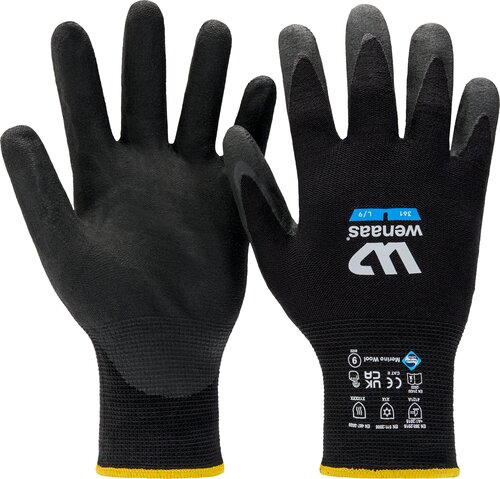 15gg, 65% Merino wool, 360° breathability, Micro Foam coating in palm, excellent grip in wet and dry conditions, high tactile sensitivity, touch function, bundle: 12 pcs, carton: 144 pcs