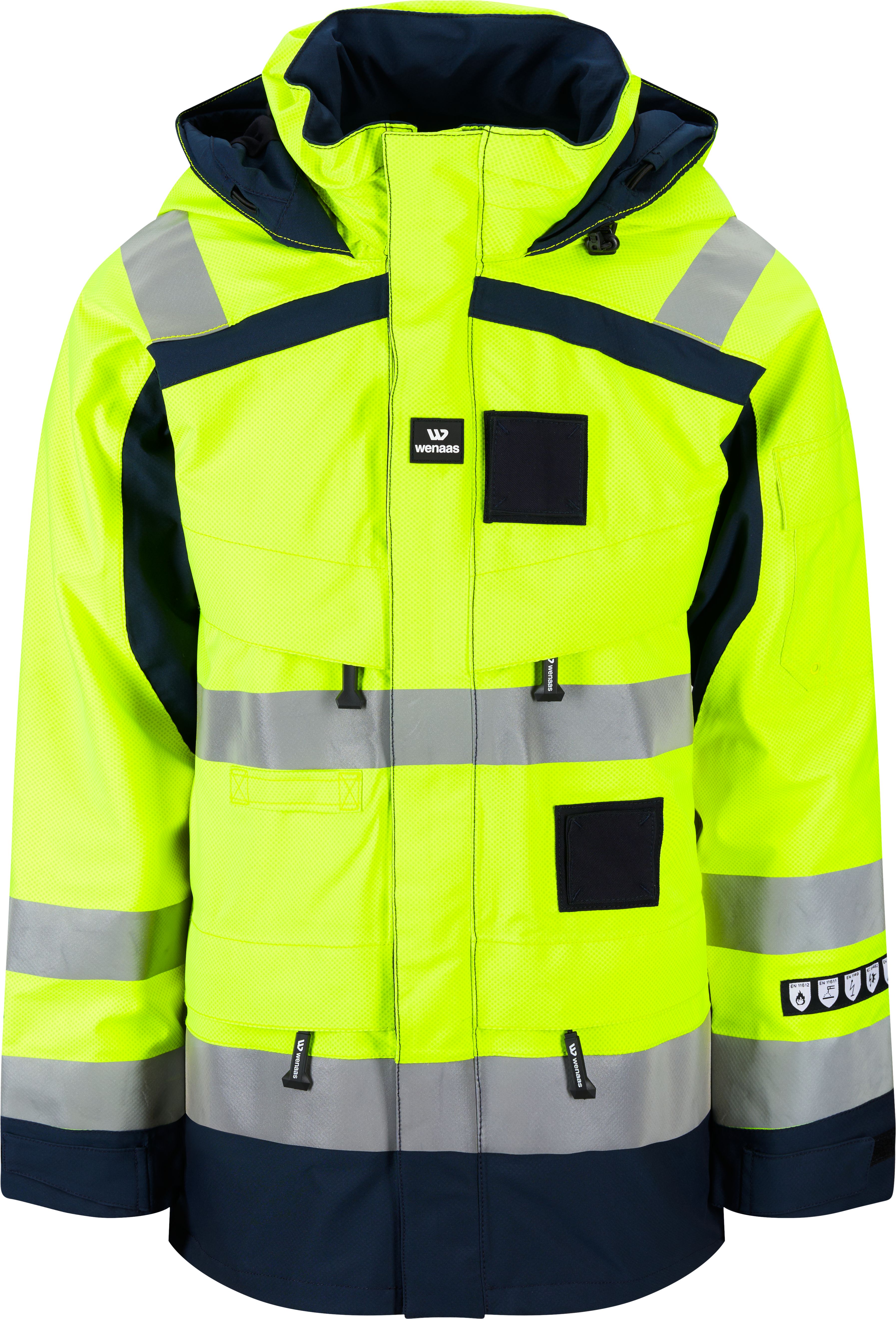 EN ISO 13688:2013+A1:2021, EN 1149-5:2018, EN ISO 20471:2013+A1:2016, Jackets 56830-19819-3205 and 56850-19819-3205 sizes XS-S class 2, sizes M-> class 3, Ensembles of jackets with trousers 26845-19819-3205, 26850-19819-3205 and 26850-19819-28 class 3, EN ISO 11612:2015, A1+A2 B1 C1 D3 E1 F1, IEC 61482-2:2018, APC 2 (7 kA), EBT 49,1 cal/cm², EN ISO 11611:2015, Class 2 A1+A2, EN 343:2019, Resistance to water penetration class 3, water vapour resistance class 3, rain tower test X, EN 13034:2005+A1:2009, Type PB[6]