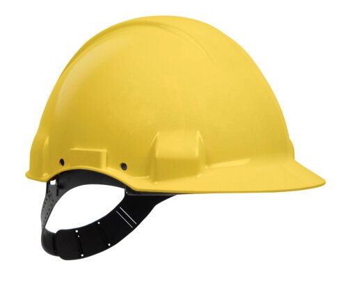 Unvented helmet with a ratchet suspension. Good field of vision. Electrically insulated up to 440 V AC. Comfort band in plastic. Softly rounded design. Uvicator™ sensor disc indicates when the hard hat has been over-exposed to UV radiation and thus needs to be replaced. The head harness can be rotated 180° and the hard hat can be worn back-to-front to increase the upward field of vision. 30-mm slot for attachment of accessories. Size 54–62 cm. Package containing 20 units.