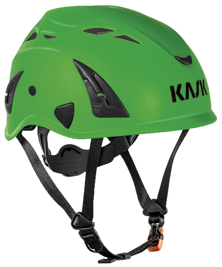 The headband is made of soft PA nylon for increased comfort. The helmet includes integrated attachment points for visors, earmuffs and headlamps, as well as a ring-to-hook solution that allows the helmet to be securely attached to a safety harness.
