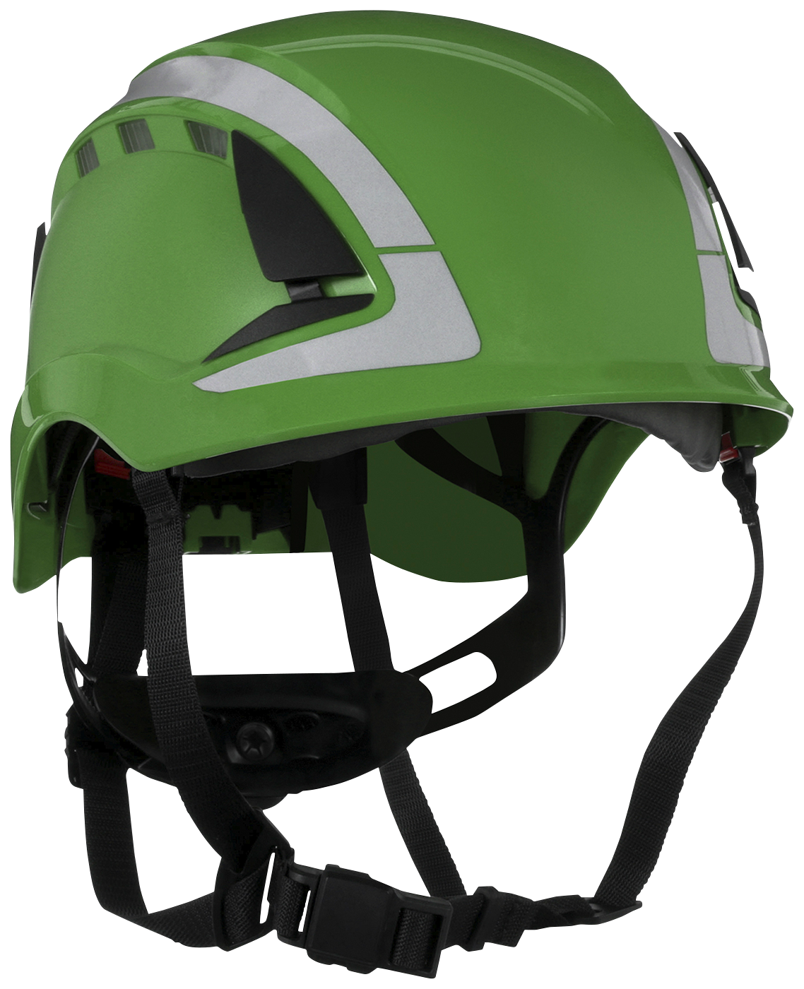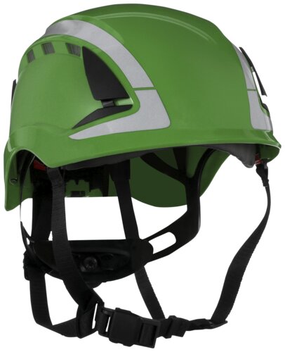 Ventilated SecureFit™ X5000 safety helmet in a modern design without a peak. This ensure the wearer's upward field of vision is not blocked. Scotchlite reflectors for increased visibility and safety. Six different settings for height. 6-point ratchet suspension with comfort band. Pressure Diffusion technology increases user comfort and offers a secure fit by reducing pressure against the forehead. The 4-point chin strap system allows fulfilment of either EN 397 (industry) or EN 12492 (climbing). Approved for use down to -30 °C and resistance to lateral deformation (LD). Uvicator™ sensor changes colour when it's time to replace the helmet. Recommended lifetime 5 years from production date. 30-mm slot for attachment of accessories. Size 50–63 cm. Weight 406 g. Suitable for work at heights and general industry use. Package containing 4 units.Show less