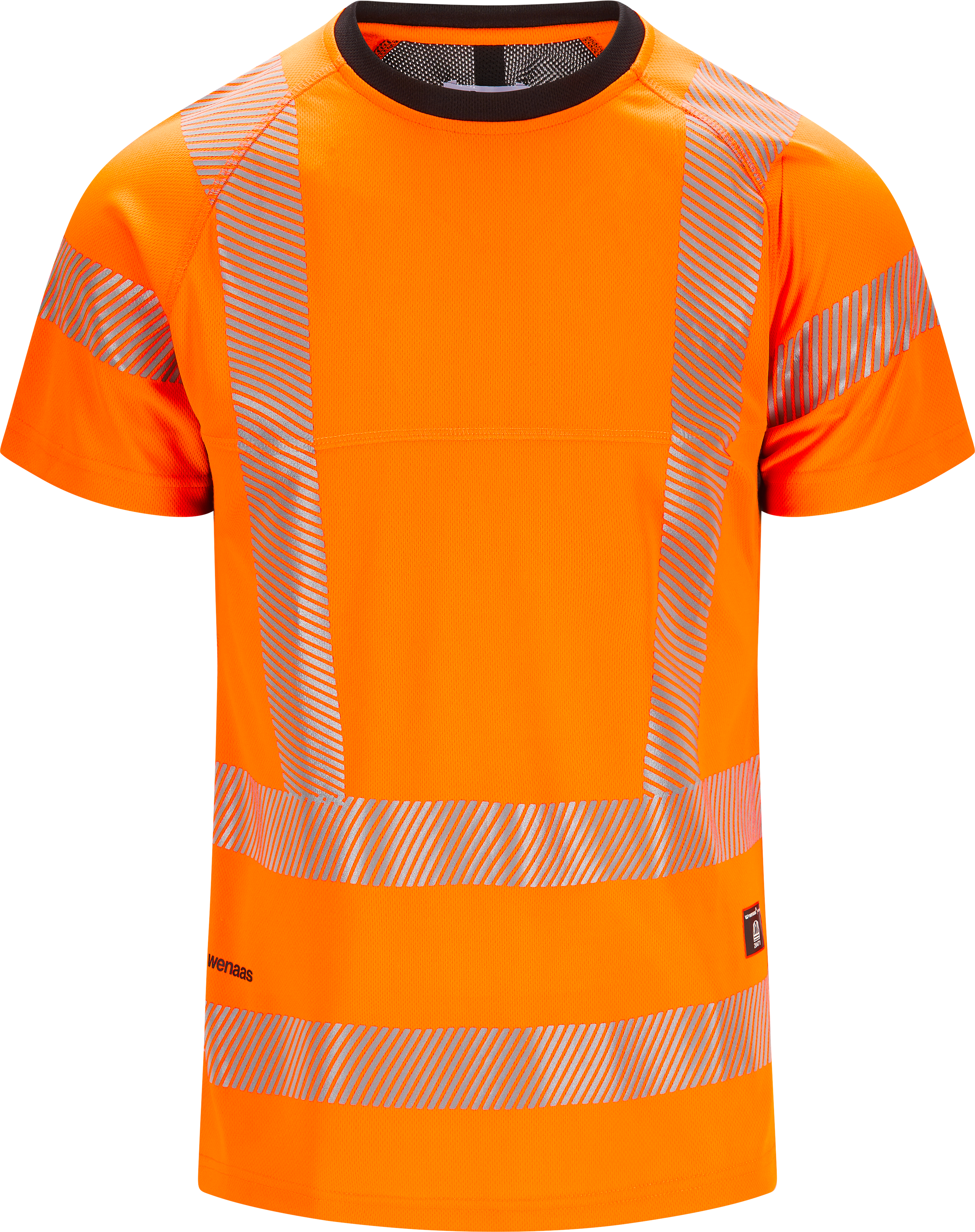 Lightweight, airy, ergonomically designed Hi-vis T-shirt. Fitted style in moisture-wicking mesh fabric with additional ventilating panel at the neck and under arms. Segmented reflective sections offer good freedom of movement.