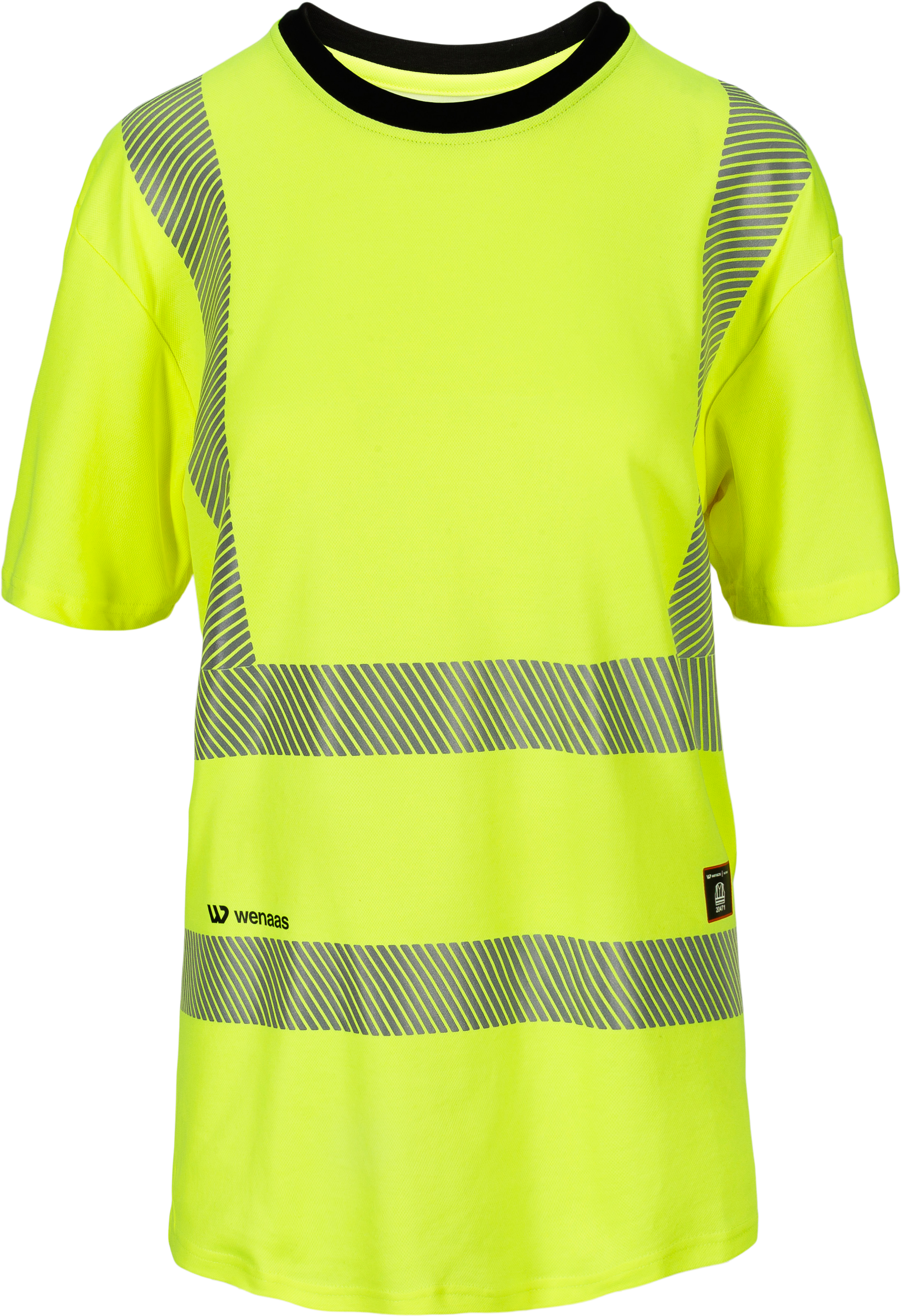 Short-sleeved T-shirt with contrasting ribbed neck. Segmented reflective bands ensure breathability and increases the mobility of the garment.
