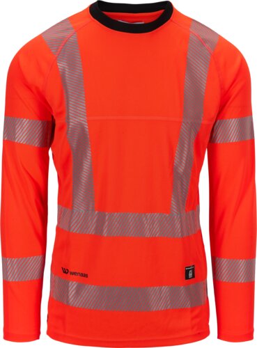 Lightweight, airy, ergonomically designed hi-vis T-shirt with long sleeves. Fitted moisture-wicking fabric with additional ventilating panel in the neck and under arms. Segmented reflective sections provide good freedom of movement. Suitable for working places in which short sleeves cannot be worn, but in which a thin jumper is preferable.