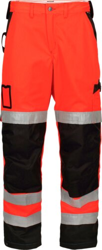 Visibility trousers with good mobility and multiple practical pockets. Reflective strips around the calves and thighs, and adjustable length and width at the bottom of the trouser legs.