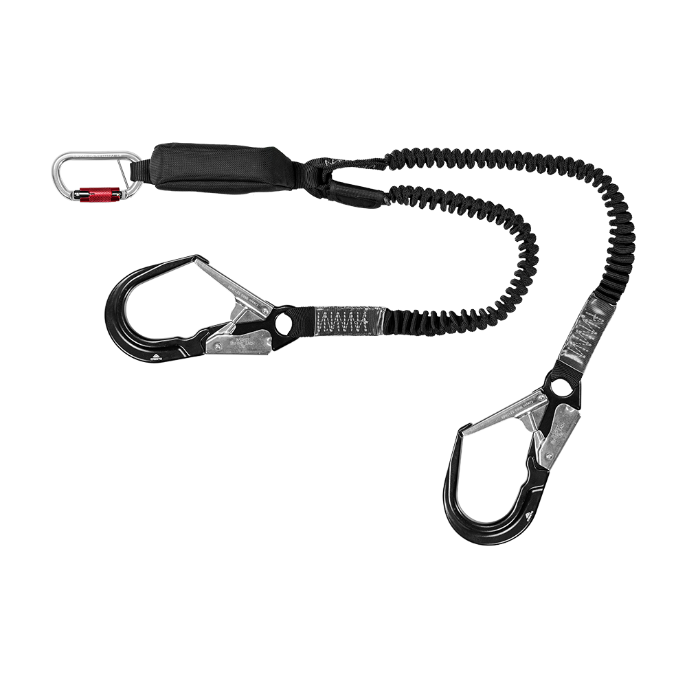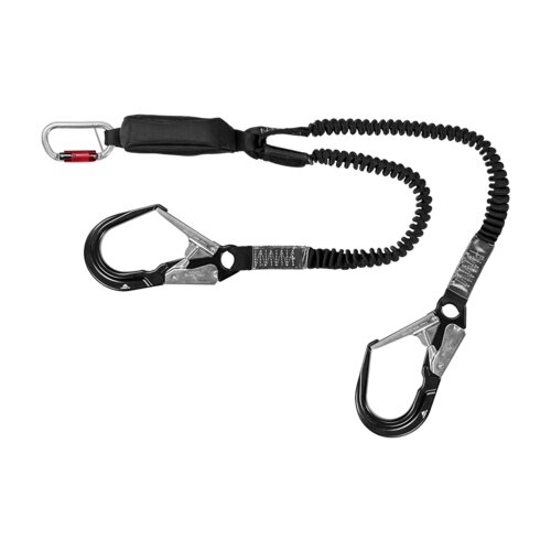 Energy Twin-Flex is a double fall arrest lanyard with flexible webbing for work in, for example, scaffolding, mobile platforms and industries. Max user weight 140 kg.