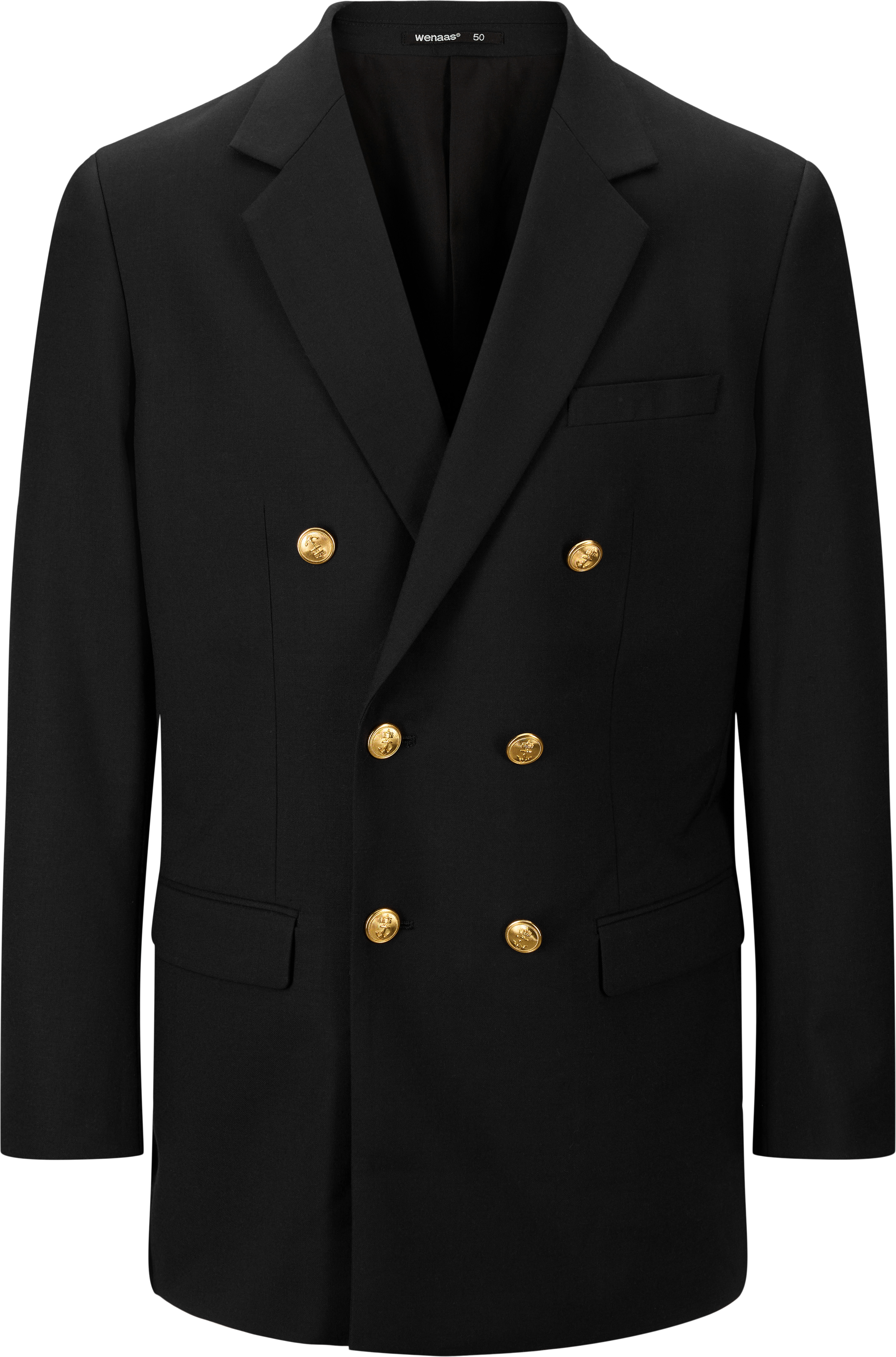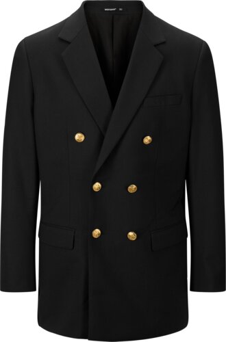 Classic double-breasted blazer with anchor buttons, external and internal pockets, and raw sleeve length for easy application of rank stripes. Made in a durable wool blend for a sharp and structured look.