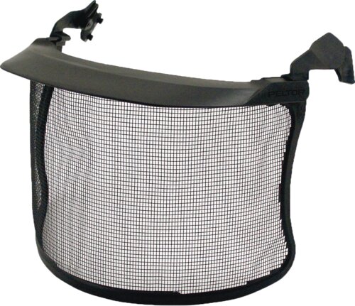 Face shield with stainless-steel mesh for 3M safety helmets. Mesh gauge 1.8 x 2.5 mm. Low light reduction thanks to the rectangular mesh. Excellent protection from chip and splinters. Can be combined with the V46 face-shield holder and the V412 face-shield arm. For use without ear protection, the P3E adapter must be used.