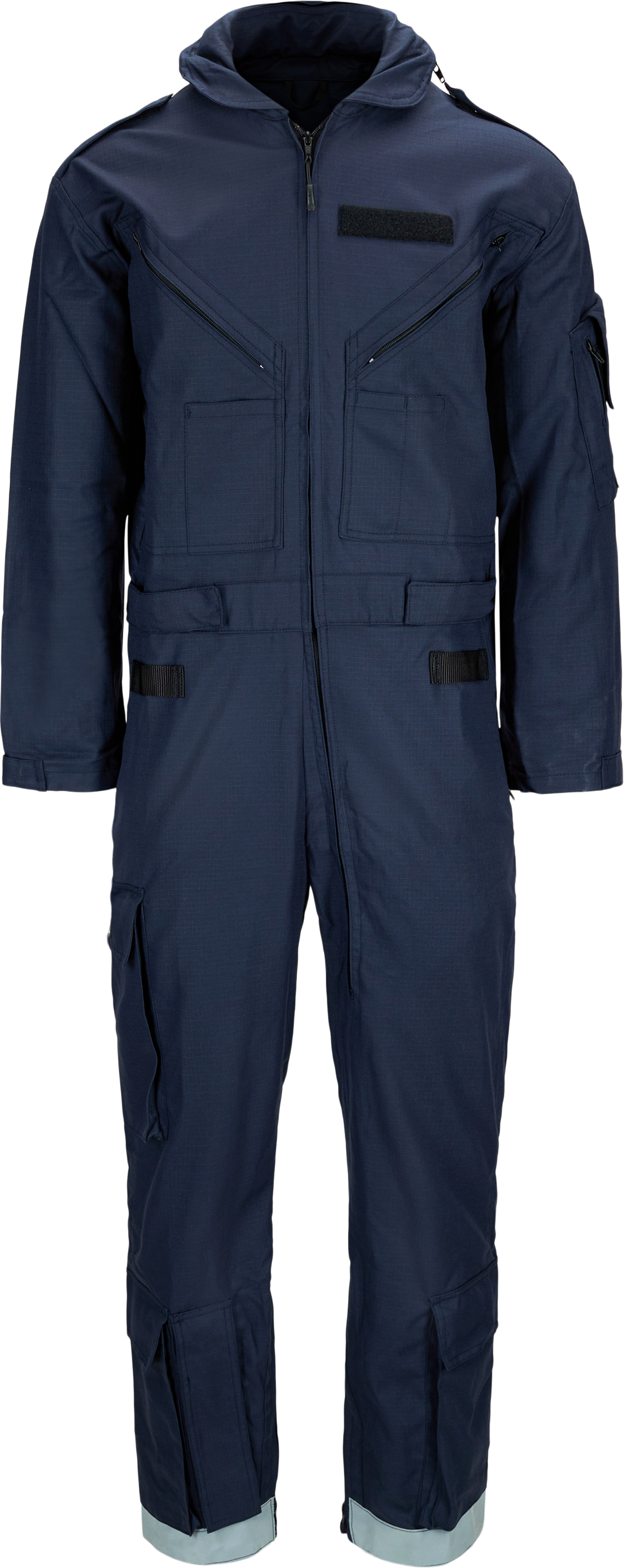 Comfortable and durable pilot coverall with 2-way zip at front. Shoulder tabs, radio attachment point, and inner loops for detachable braces. Several practical pockets as well as an attachment point on left chest for a name badge. Adjustable waist, sleeve cuffs, and leg hems. Suitable for aviation work.