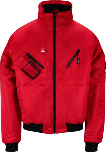 Teddy lining in body, padded sleeves, front zipper, ribbed cuffs and sleeve hem. Slanted chest pockets with zipper, cell phone pocket and ID-card pocket on right chest, front pocket, interior pocket, pocket with pen pocket and zipper on left sleeve.