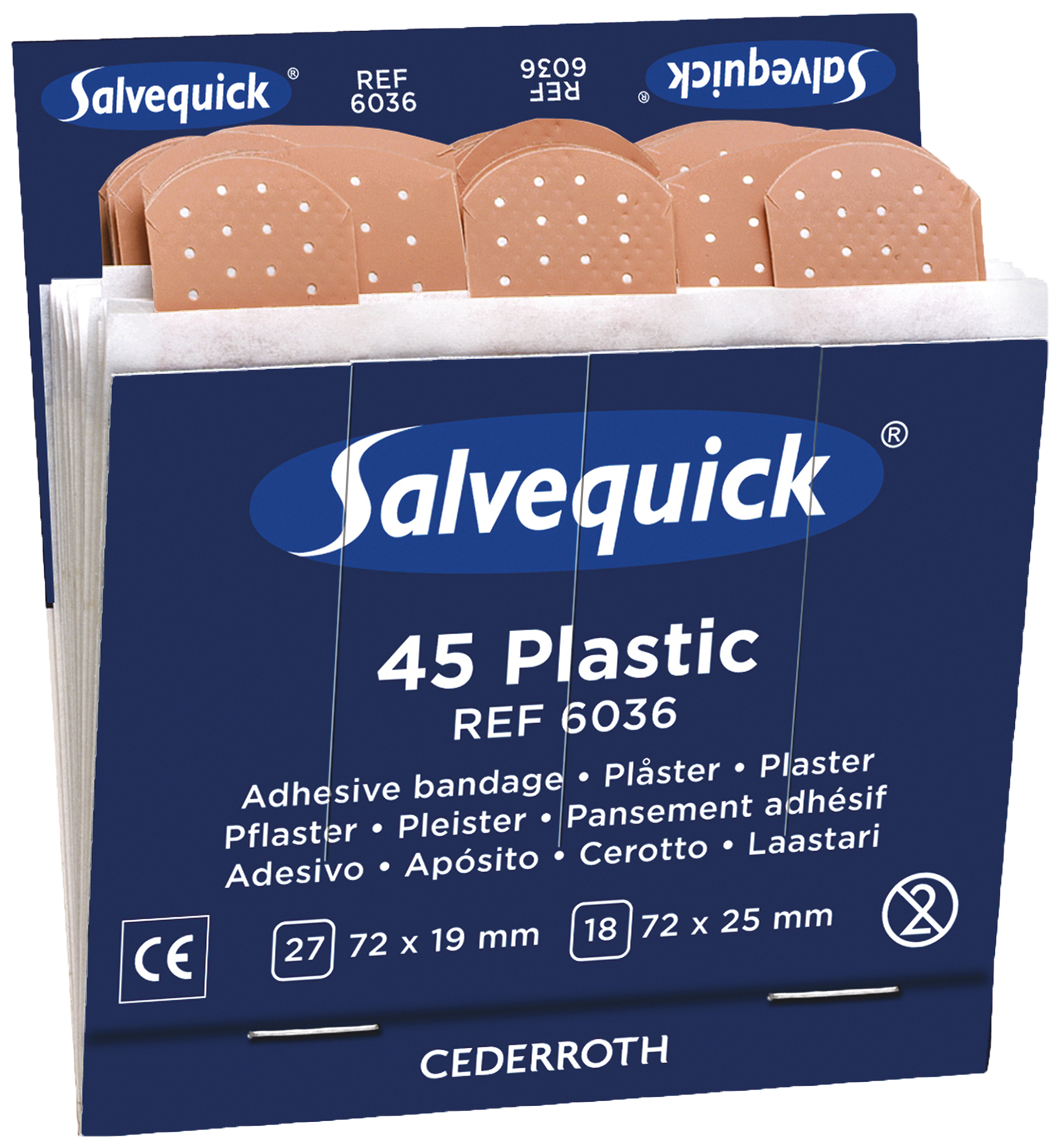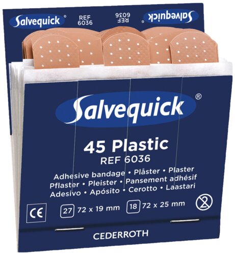 Refill for Salvequick plaster dispenser and first aid station. 6 x 45 pcs. Carton: 10 boxes of 45 pcs.