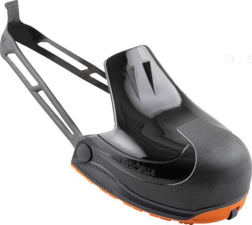 Spacious, lightweight, and metal-free overshoe with a protective composite toe for use over regular shoes. Coated with TPU and equipped with an adjustable strap for securing it behind the heel. It can be washed using a soft brush or a damp cloth with soap.