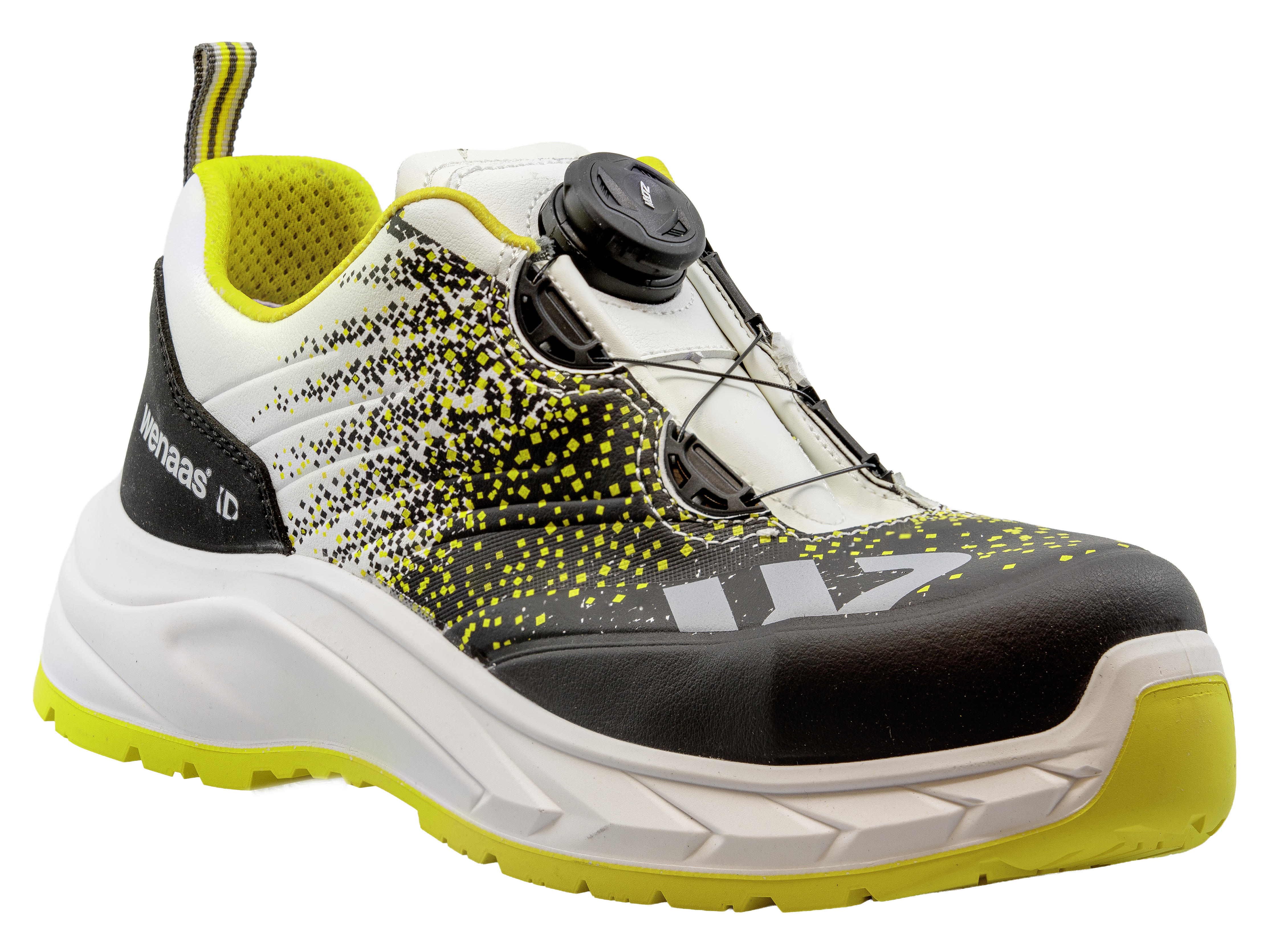 Wenaas ID 111 – robust and comfortable safety shoe for demanding workdays, yet breathable. Microfiber upper with high durability. 100% metal-free construction, slip-resistant rubber outsole, and replaceable shock-absorbing and pressure-relieving “inlet” provide maximum comfort and protection. The MOZ lacing system ensures quick and precise adjustment.