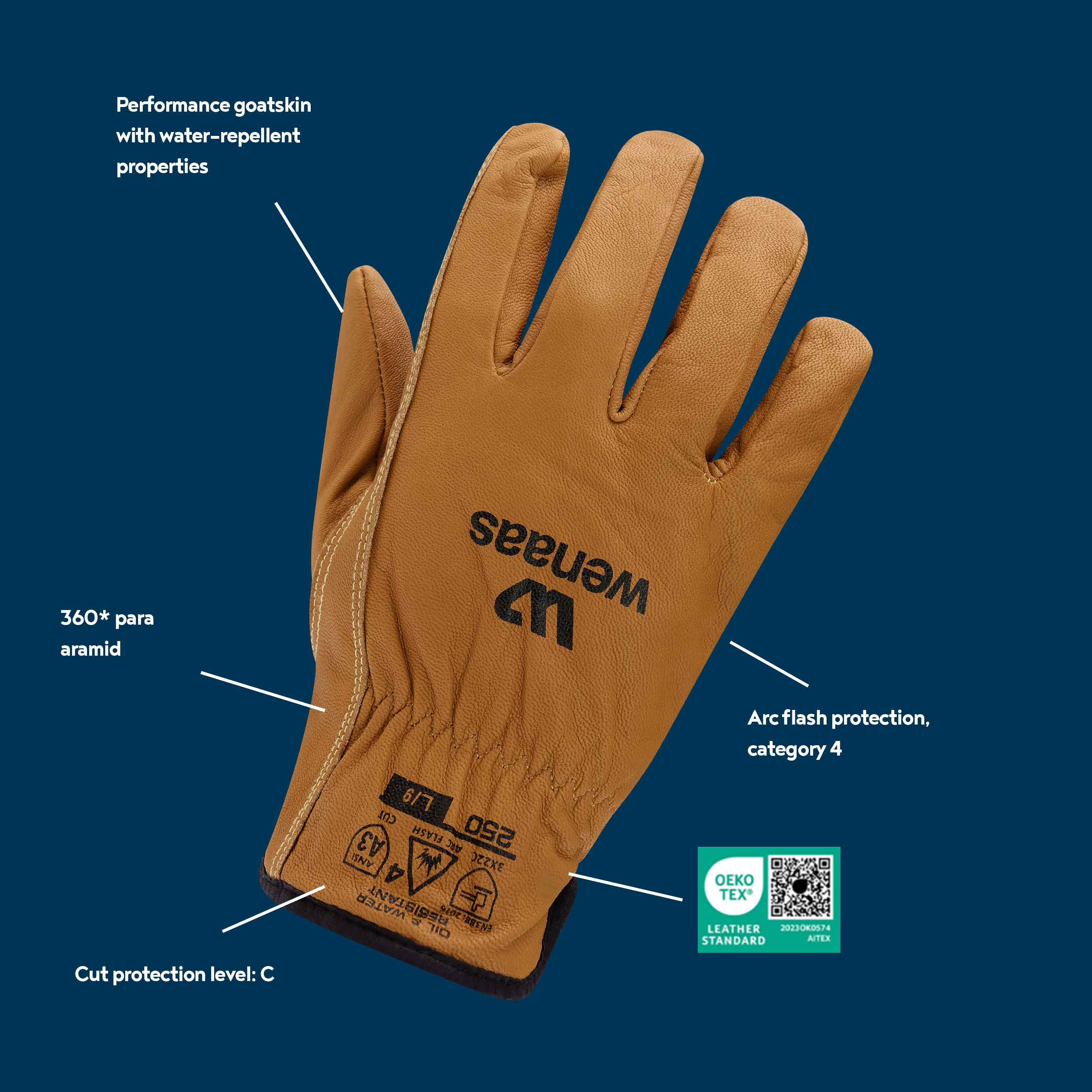 Work gloves with arc flash protection can withstand the extreme temperatures and pressure associated with electrical voltage.