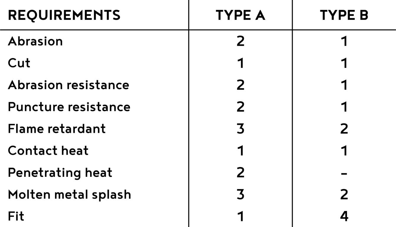 Type A: Less mobility and better physical protection. This type is recommended for all types of welding work, where better protection is required, except TIG welding.