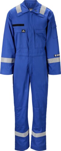 Lightweight and flame-retardant coverall that combines comfort, freedom of movement, and functionality. Featuring a stand-up collar, two-way zipper under a front flap, and an elasticated waistband, it offers a secure fit and easy on/off. Practical pockets including knee pad pockets and reflective bands around the arms, legs, and shoulders ensure functionality and visibility in demanding work environments.