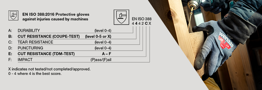 The material from the palm of the glove is placed in a machine that uses standardized abrasive paper. The paper is rubbed against the material until a hole forms. There are significant differences between the levels, with level 1 corresponding to 100 rubs and level 4 corresponding to 8000 rubs. The results are shown in the table below.