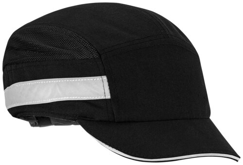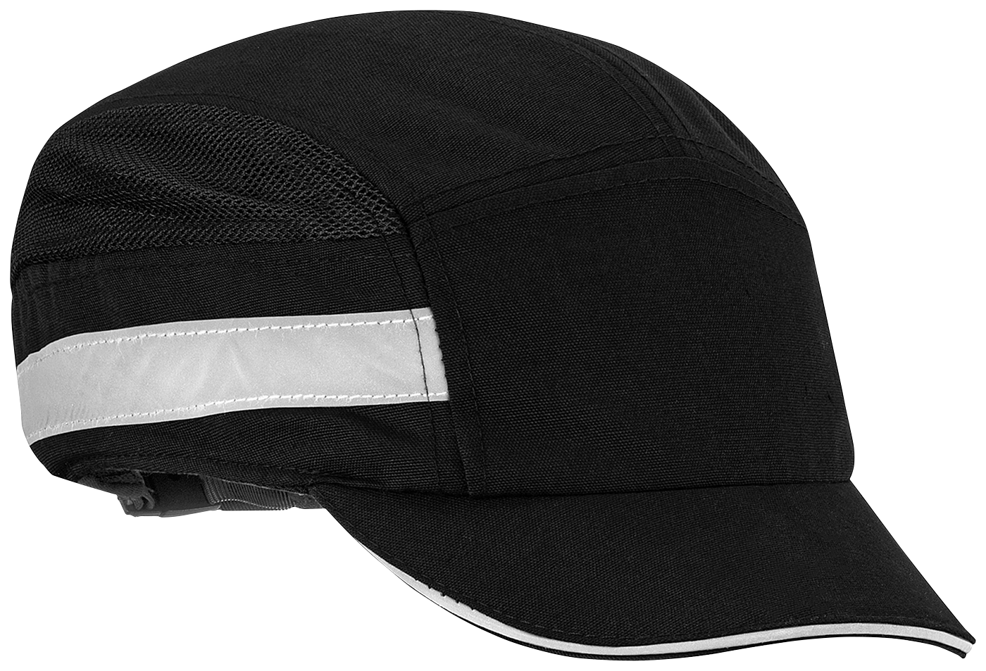 Bump Caps made of cotton and polyester integrated with mesh. Reflex on both sides for high visibility. Perforated shell in ABS plastic with inserted foam created for optimal comfort, protection, flexibility and ventilation. 55mm shortened cap peak. 52-65cm adjustable sizes.
