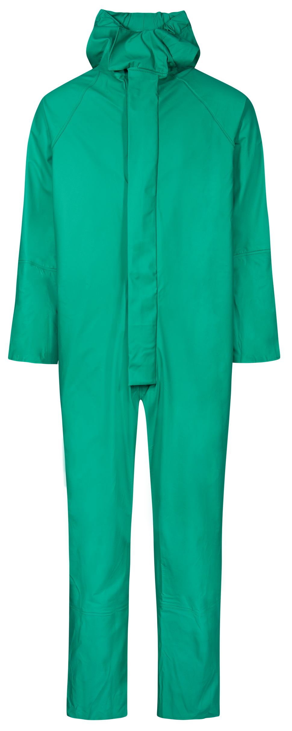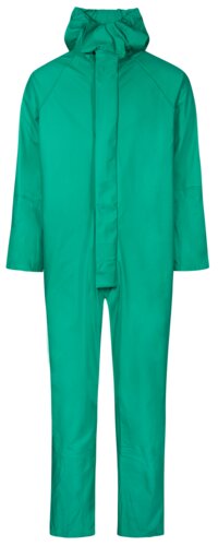 Chemical Suit in extra strong PU/PVC quality. Wind and waterproof. Fixed hood, Neck opening with Velcro, zipper under double storm flap with press studs, storm cuffs at sleeves and ankles.