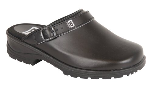 Classic clogs with PU-leather upper and oil-resistant outer sole. Wide fit model, ventilation holes and padded footbed provides comfort. Reversible heel strap makes the clog extra comfortable. Suitable for work in laboratories, medical offices, and the food-processing industry.