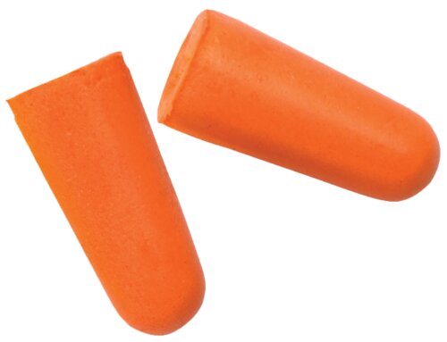 Earplugs in soft polyurethane foam which expand to fit ear canal. Available in a convenient dispenser box.