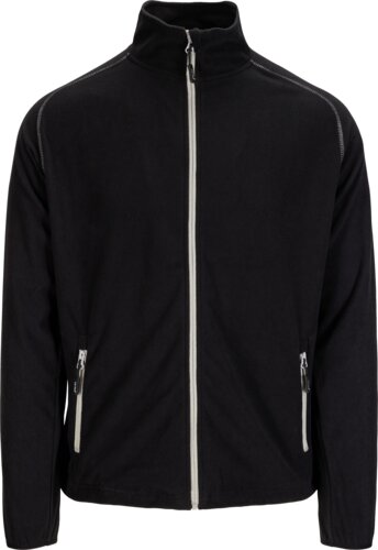 Fleece jacket with zip on front, seams in contrast color. Two zippered front pockets. Adjustable hem.